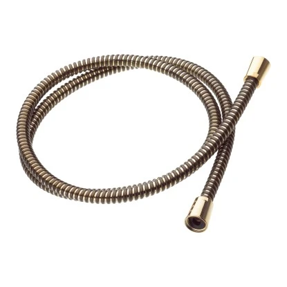 Der Brauseschlauch Sun 160 ist aus Kunststoff gefertigt und hat eine anthrazit-goldfarbene Oberfläche. Der Schlauch hat eine Länge von 160 cm und 18,6 mm (G1/2) Anschlüsse.