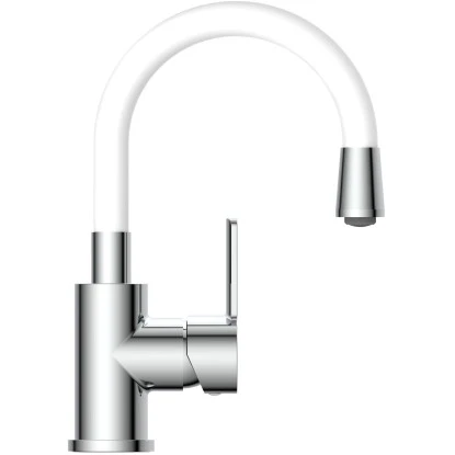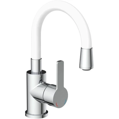 Flexo Waschtischarmatur mit Flexiblem Auslauf Chrom-Weiß. Diese Waschtischarmatur ist eine gelungene Kombination aus Funktion und Design. Der farbige Soft-Touch-Auslauf ist nicht nur ein Hingucker, sondern auch besonders praktisch in der Anwendung. Durch sein flexibles Material lässt er sich in alle Richtungen biegen und bietet damit vielfältige Einsatzmöglichkeiten.