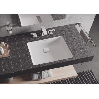 Dass auch kleine Waschbecken gut aussehen können, beweist die kompakte Keramik eindrucksvoll mit einer schlichten Form und Linienführung. In einer Waschtischplatte eingelassen kommt es voll zur Geltung und spart gleichzeitig wertvollen Platz. Besonders in Kombination mit Armaturen der Grohe Kollektionen Eurocube, Lineare, Allure und Allure Brilliant ergibt sich ein harmonisches Design.