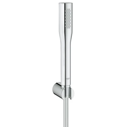 Die Grohe Euphoria Cosmopolitan Stick Wannengarnitur beinhaltet die Euphoria Stick Cosmopolitan Handbrause, eine Wandhalterung und einen Silverflex Brauseschlauch, der sich dank TwistFree Mechanismus mitdreht. Der Brausekopf ist äußerst praktisch und hat außerdem eine schlanke Form.
