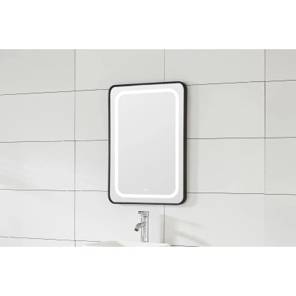 Der Sanotechnik Spiegel Soho überzeugt durch das elegante Design mit schwarzem Aluminiumrahmen und lässt dank der LED-Beleuchtung jedes Bad heller und freundlicher wirken.